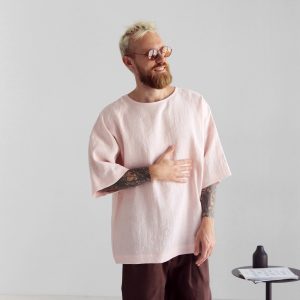 Mens Linen T Shirt Oversize Wide Sleeve For