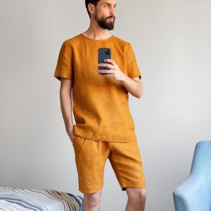 Mens Linen T Shirt Stylish Outfit Tee For
